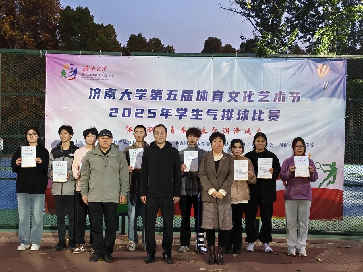 为助力校园体育文化建设,丰富学生课余生活,彰显青春活力与团队协作精神,11月3日下午,济南大学第五届体育文化艺术节——学生气排球比赛在学校排球场圆满落幕。